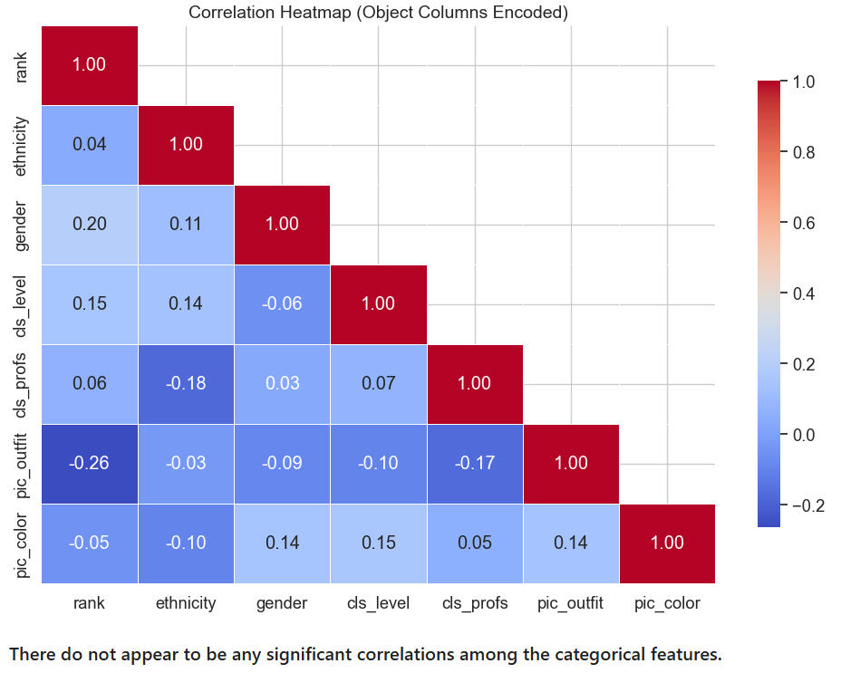 * It is interesting that the upper-level female judge's ratings correlate fairly strongly (negatively) with professor's age (-0.42).